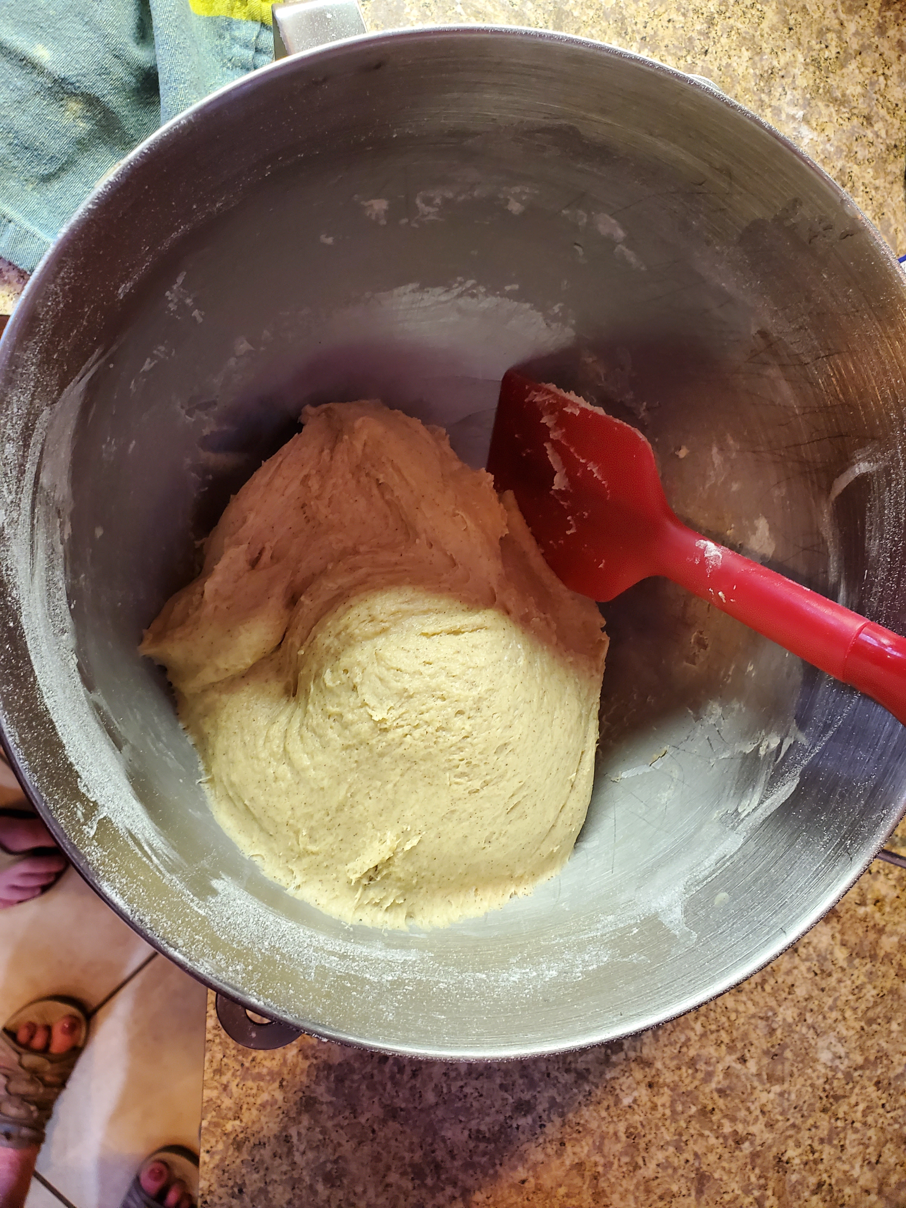 - Add to dry ingredients and mix with dough hook