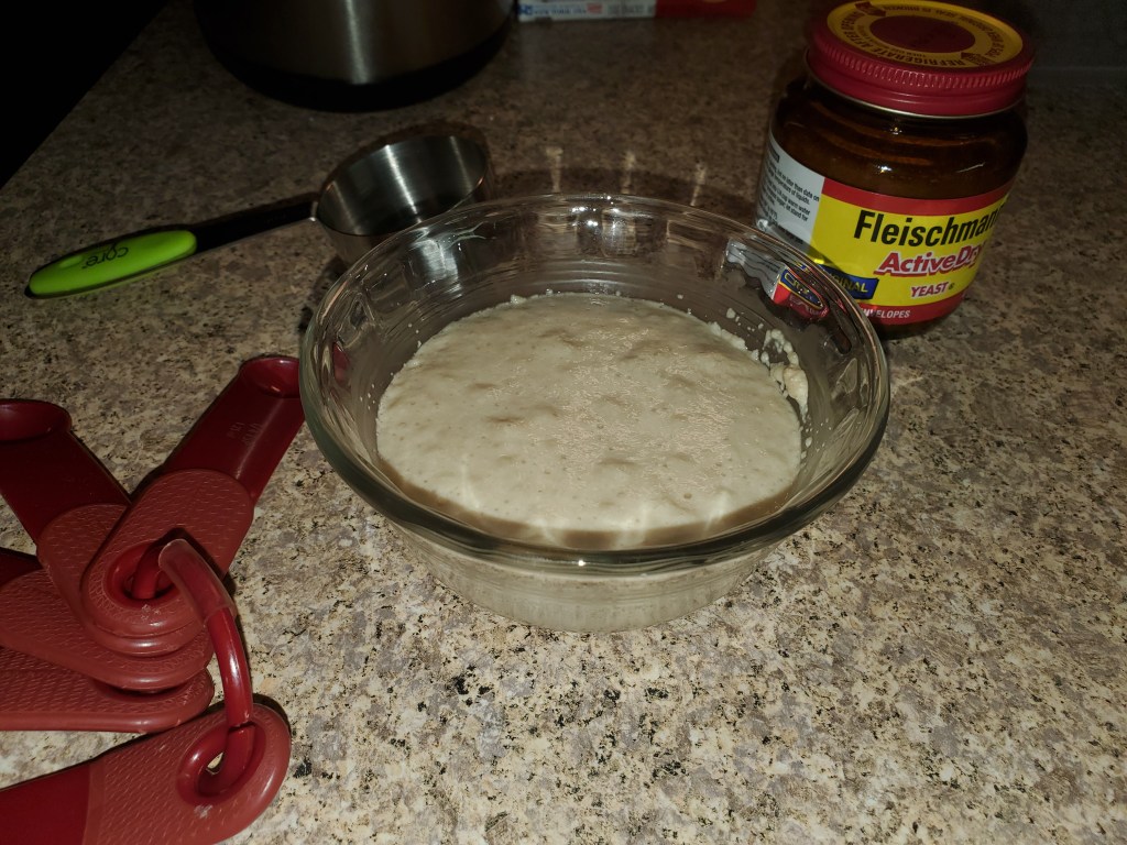 First, start your yeast. If you’ve been following my blog, I highly recommend activating your yeast, instead of just adding dry yeast to your ingredients. Activating yeast does a few things for you. It shows that your yeast is viable. It also gives the yeast a little head start on consuming sugar and multiplying. I typically use Fleischmann’s Dry Active Yeast, but any yeast will work. Follow the instructions on your yeast package.
