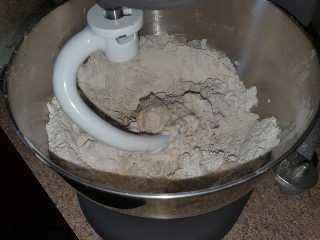 - Mix dry ingredients (Salt, Sugar, Flour) in Stand Mixer Bowl