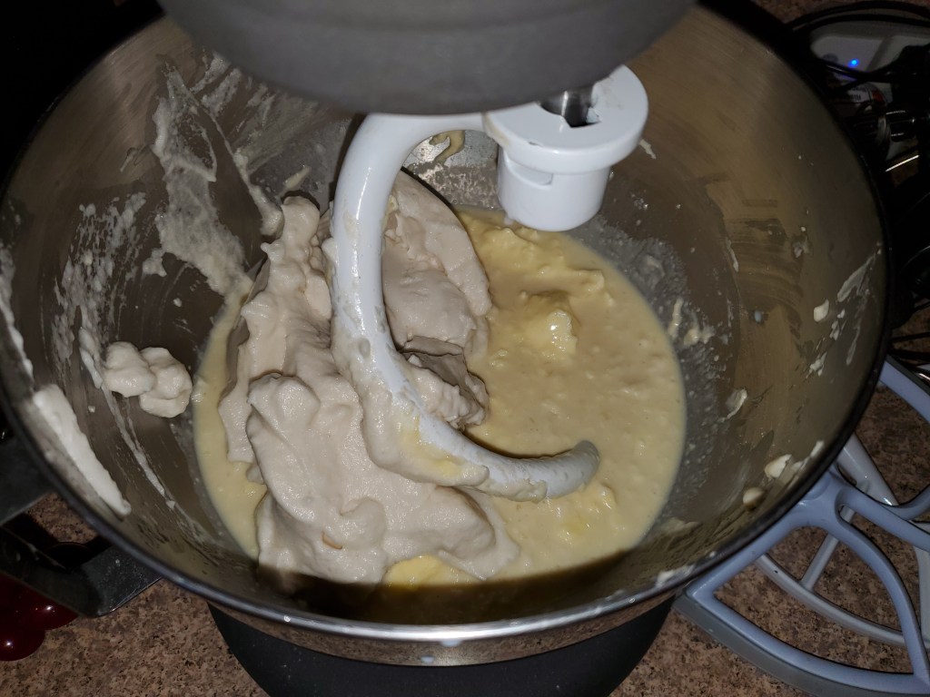 7. Using Stand Mixer and Dough Hook, gradually add in flour