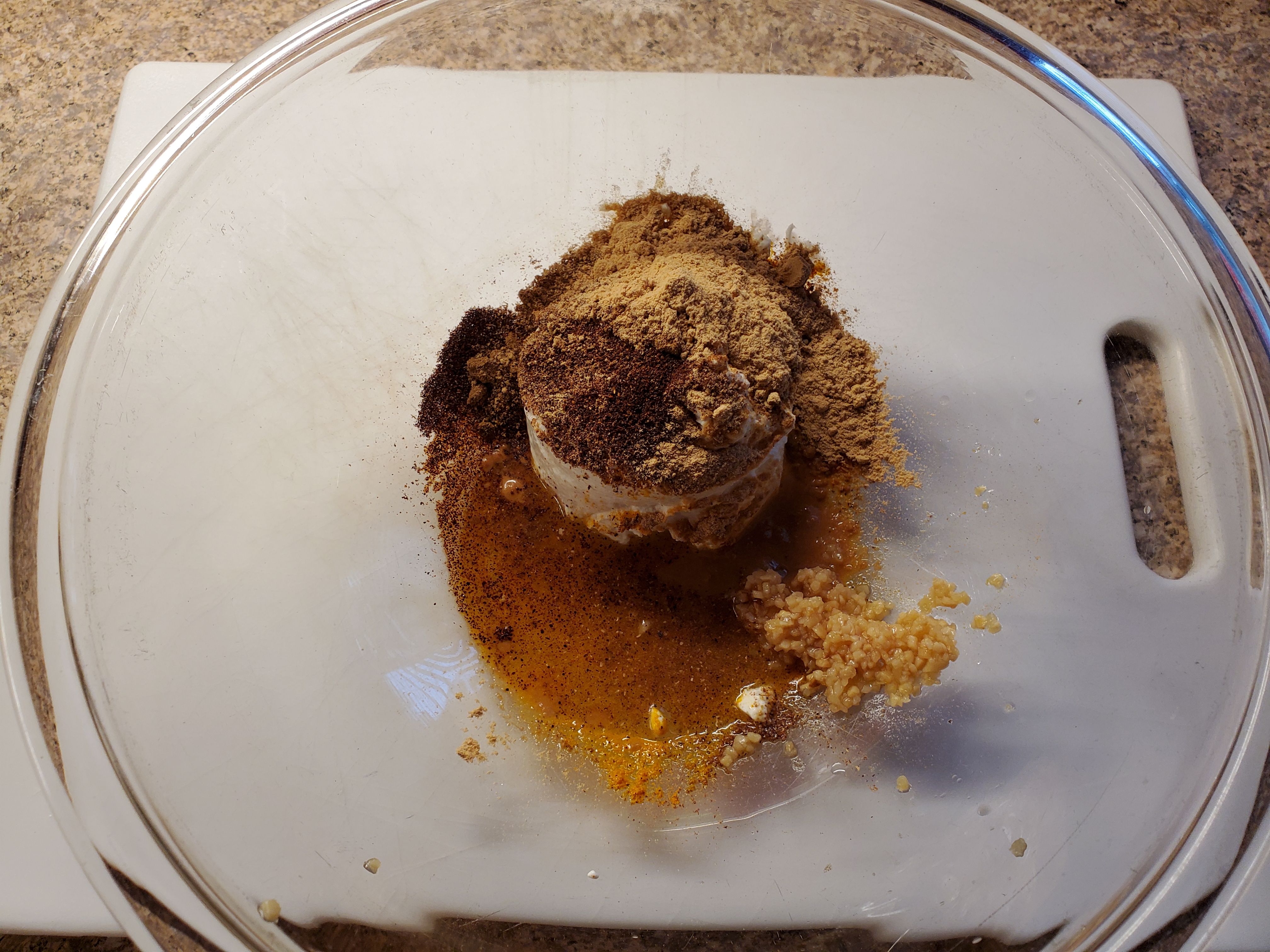 1. Mix Yogurt, Ginger, Garam Masala, Cumin, Tumeric, Chili, Garlic, and Lemon Juice in Large Bowl.