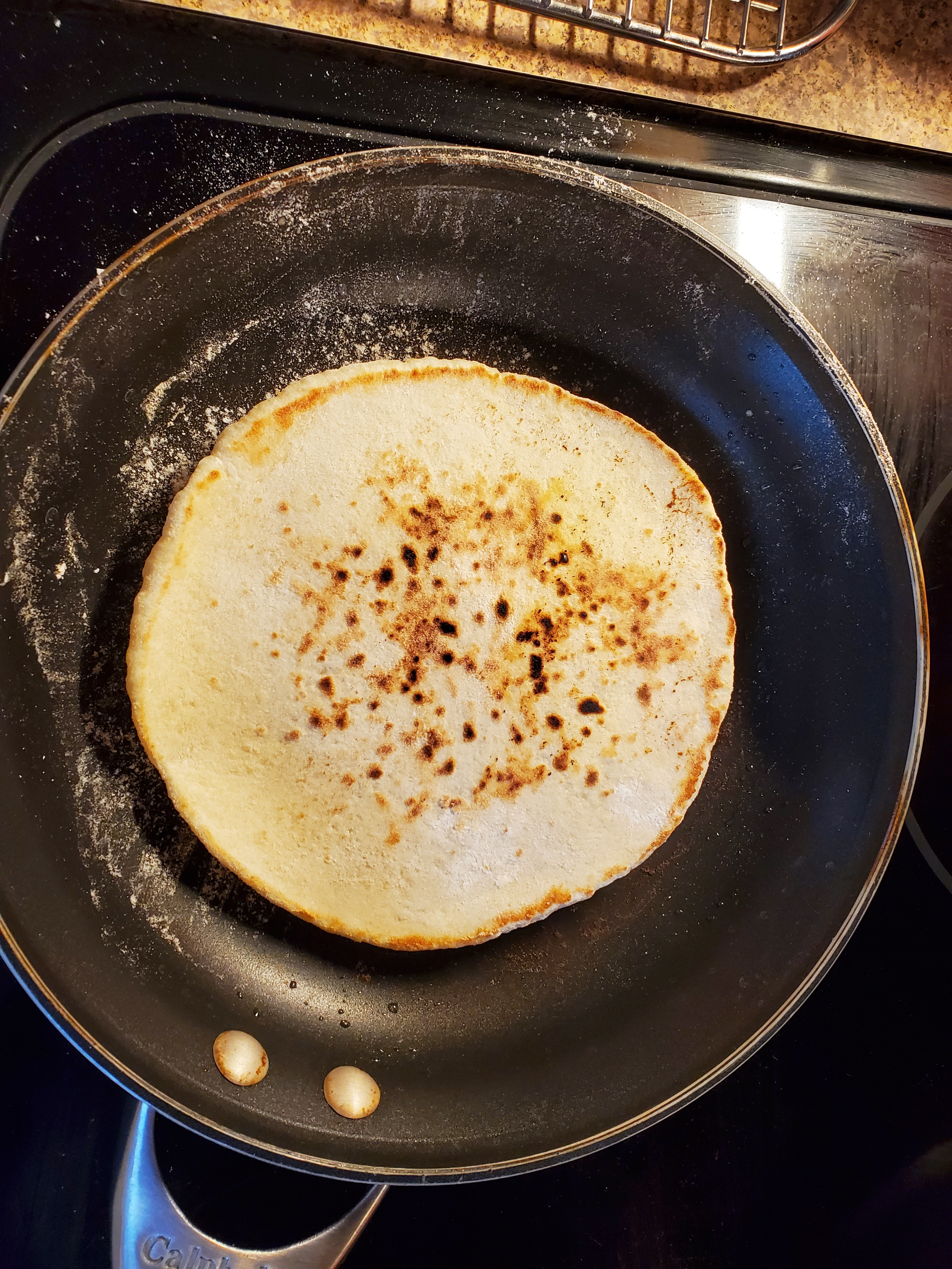 10. Cook dough disk on one side for 1 – 1½ minutes, or until bottom side is browned.